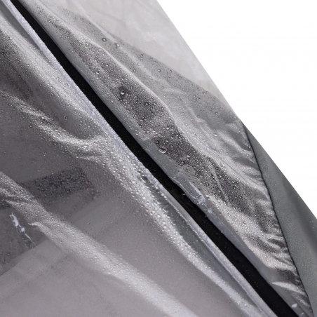 L’habillage pluie 4 Seasons Sports se monte rapidement grâce à son cordon flexible et reste facilement accessible grâce à son sac de transport pratique fixé sur la poussette. La partie avant s’ouvre avec des fermetures éclair pour installer ou retirer votre enfant facilement, tout en conservant la capote pare-soleil rabattable de votre poussette.