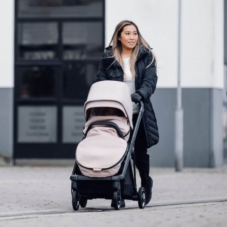 Une fois installée sur la poussette, la chancelière ne tombe pas grâce à sa fonction antidérapante. Elle possède une doublure qui protège l'intérieur de la chancelière.