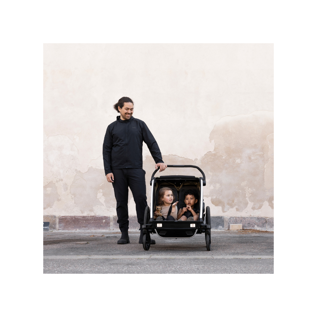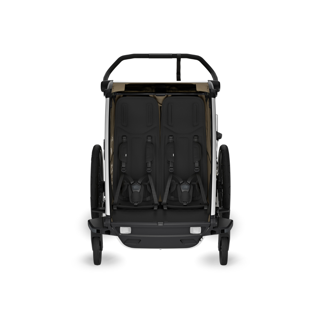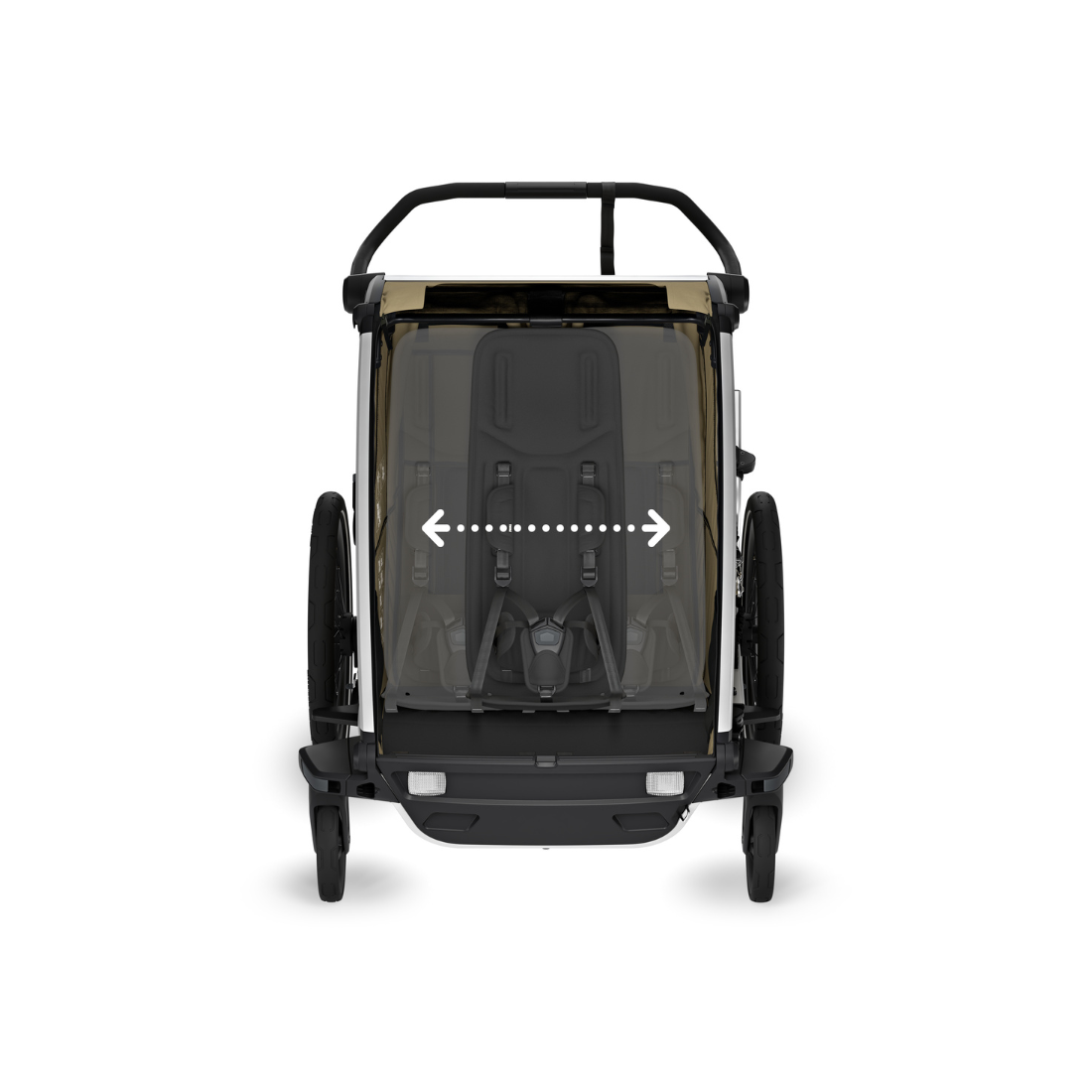 À l’intérieur, les enfants profitent de sièges moelleux et ergonomiques pour un confort optimal. Les matériaux utilisés sont exempts de PFAS, résistants aux dommages causés par le soleil et réparables, prolongeant ainsi la durée de vie de la remorque. Grâce à son assise modulaire, vous pouvez choisir d’avoir un enfant assis au milieu ou deux enfants de chaque côté.