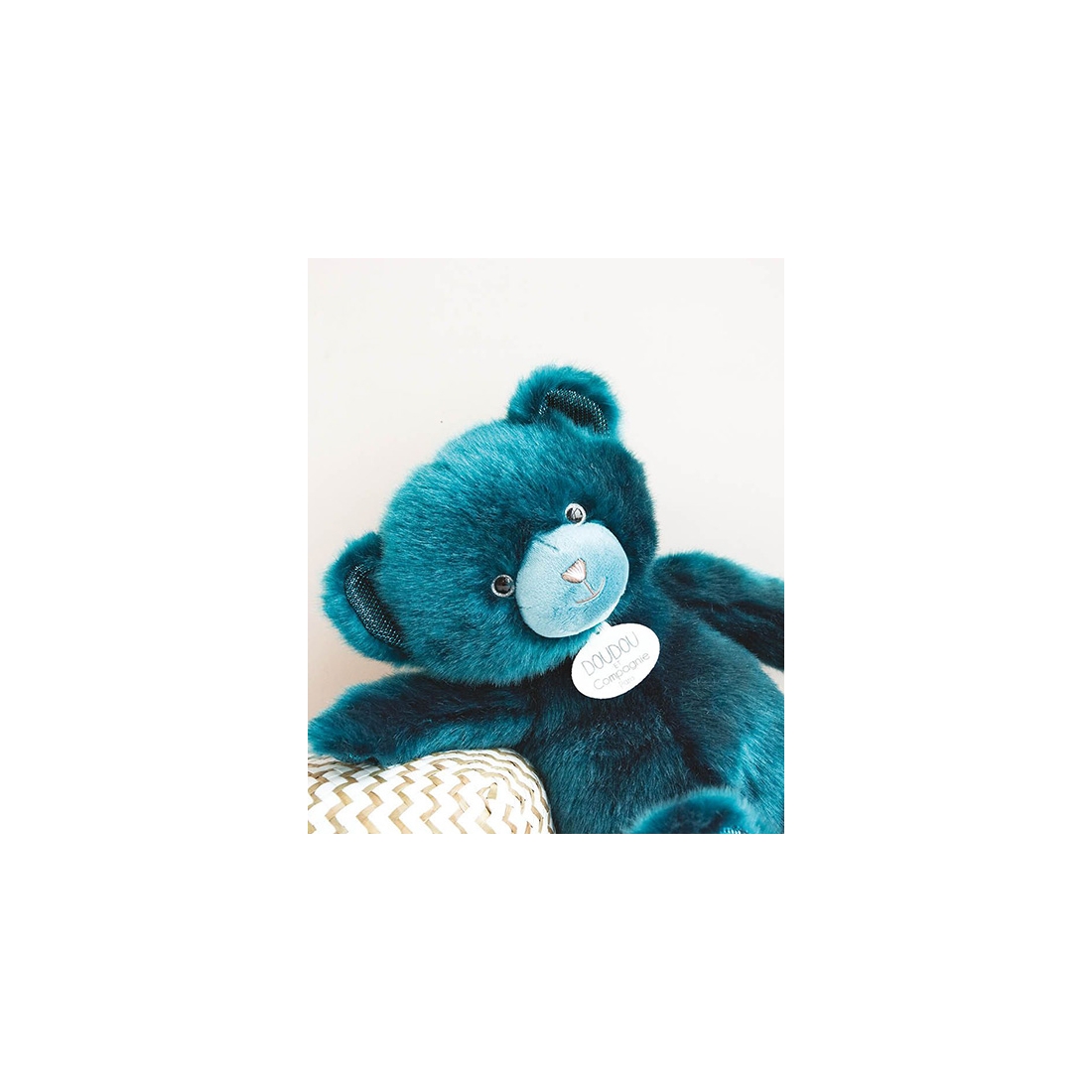 Cette magnifique peluche ours de collection de Doudou et Compagnie est un subtil mélange de savoir-faire traditionnel et modernité. Fabriquée en peluche de qualité, sa couleur paon et sa texture douce et soyeuse en font un compagnon unique pour les enfants ou les collectionneurs.
