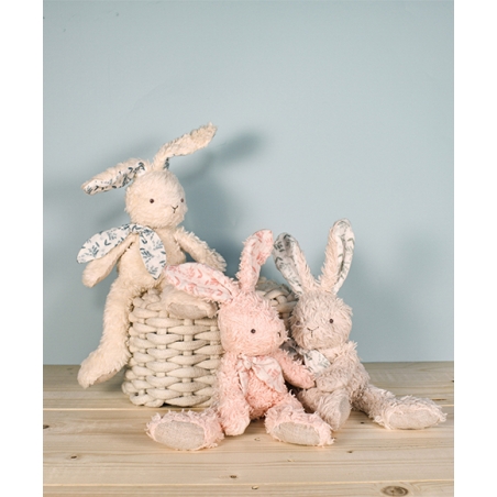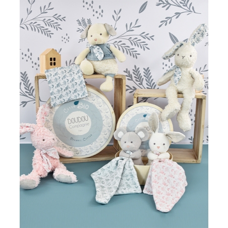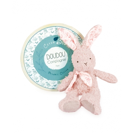 Lapin peluche rose en coton Bio 25 cm - Doudou et Compagnie