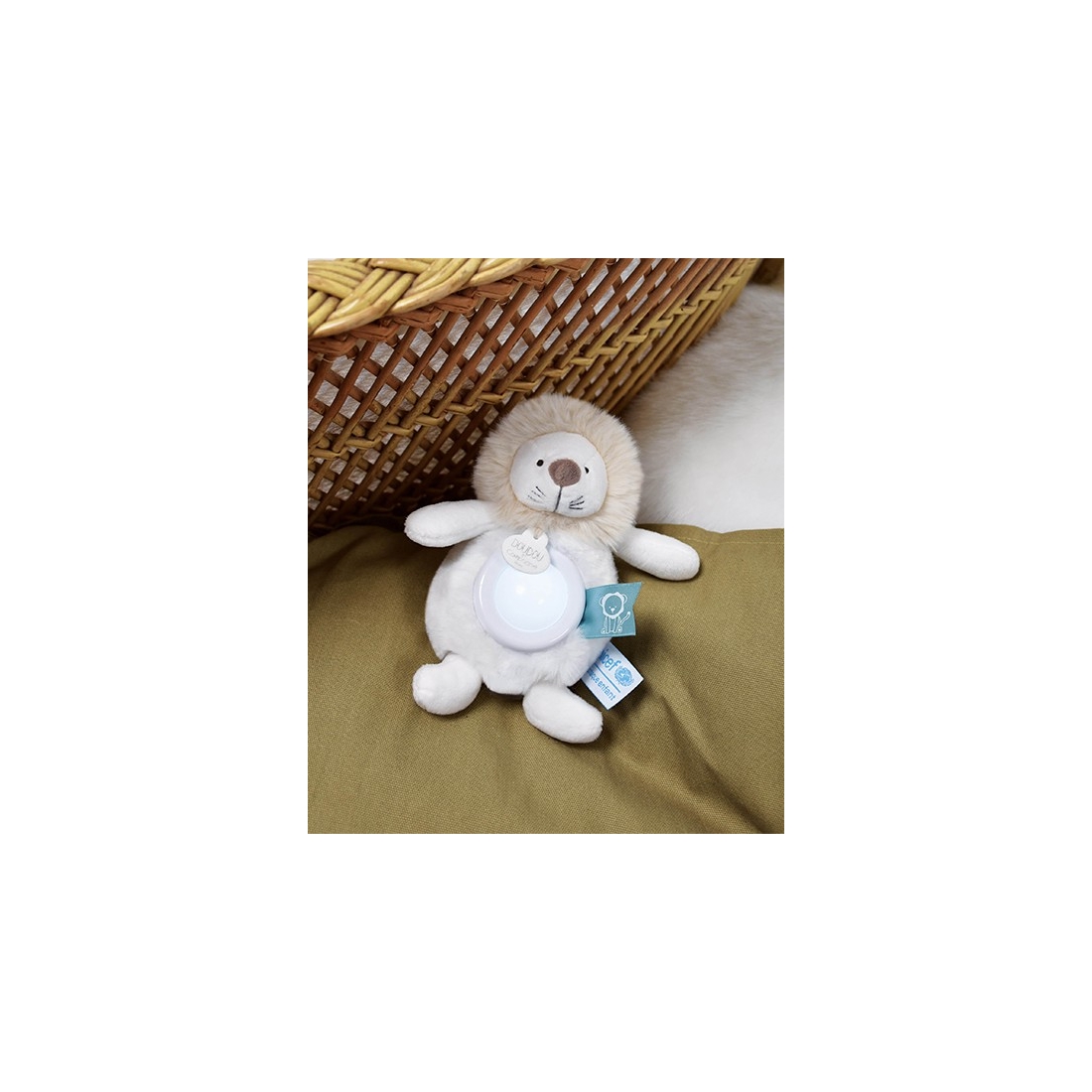 La peluche veilleuse lion beige 15 cm Doudou et Compagnie est le compagnon idéal pour accompagner les nuits de bébé, tout en alliant praticité, douceur et engagement solidaire grâce au partenariat avec UNICEF.