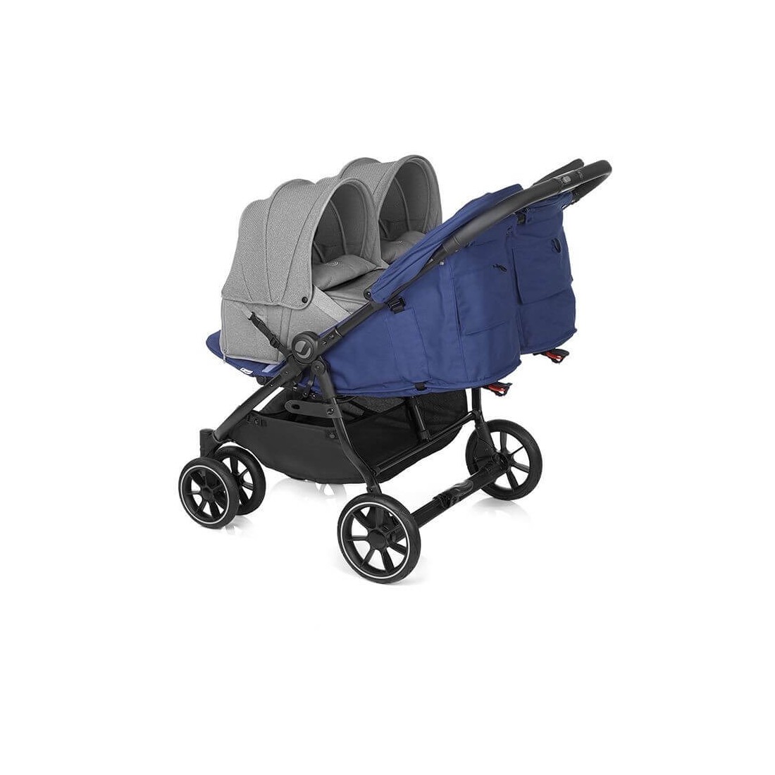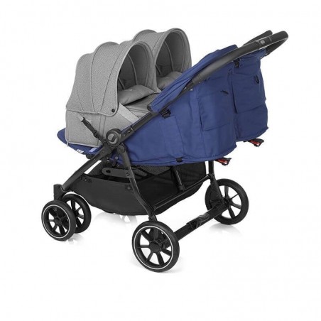 Cette poussette double est dotée d'un panier de rangement de 25 litres pouvant supporter jusqu'à 4 kg pour emporter tout le nécessaire pour vos bébés avec vous.