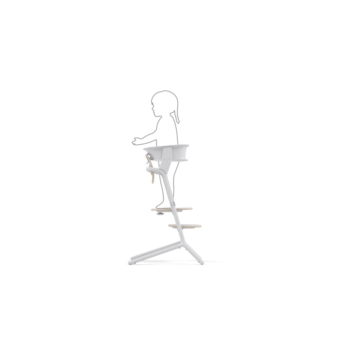 Le siège et le repose-pieds se transforment en marches pour que votre enfant puisse monter et descendre de manière autonome, en toute sécurité. Ce système favorise l’autonomie et la liberté de mouvement, tout en gardant un contact visuel avec les parents.