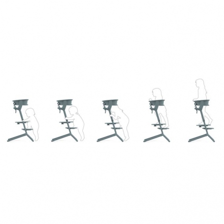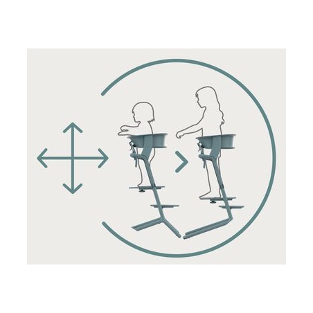 Le siège et le repose-pieds se transforment en marches pour que votre enfant puisse monter et descendre de manière autonome, en toute sécurité. Ce système favorise l’autonomie et la liberté de mouvement, tout en gardant un contact visuel avec les parents.