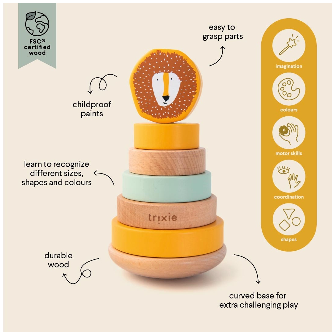 Découvrez la Tour à empiler en bois de la marque Trixie Baby, un cadeau unique et original qui surprendra les heureux parents du nouveau-né.