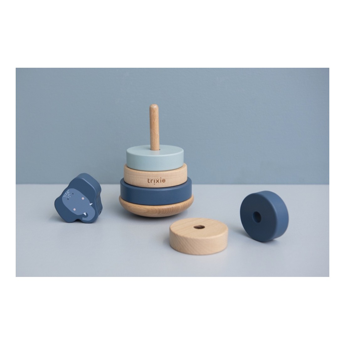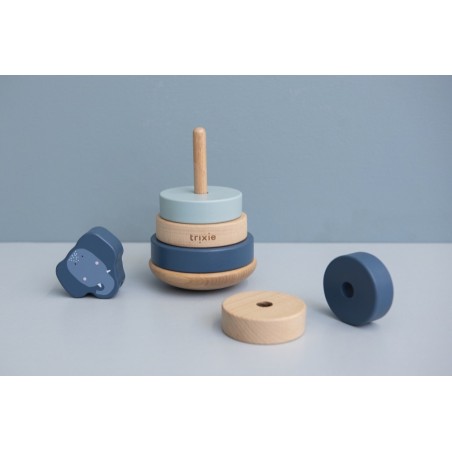 Découvrez la Tour à empiler en bois de la marque Trixie Baby, un cadeau unique et original qui surprendra les heureux parents du nouveau-né.