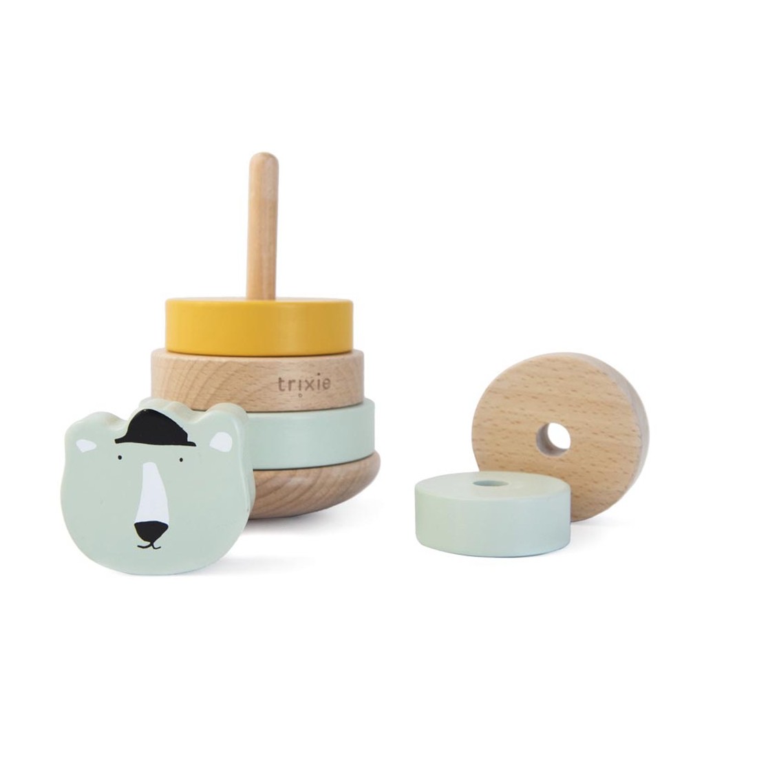 Découvrez la Tour à empiler en bois de la marque Trixie Baby, un cadeau unique et original qui surprendra les heureux parents du nouveau-né.