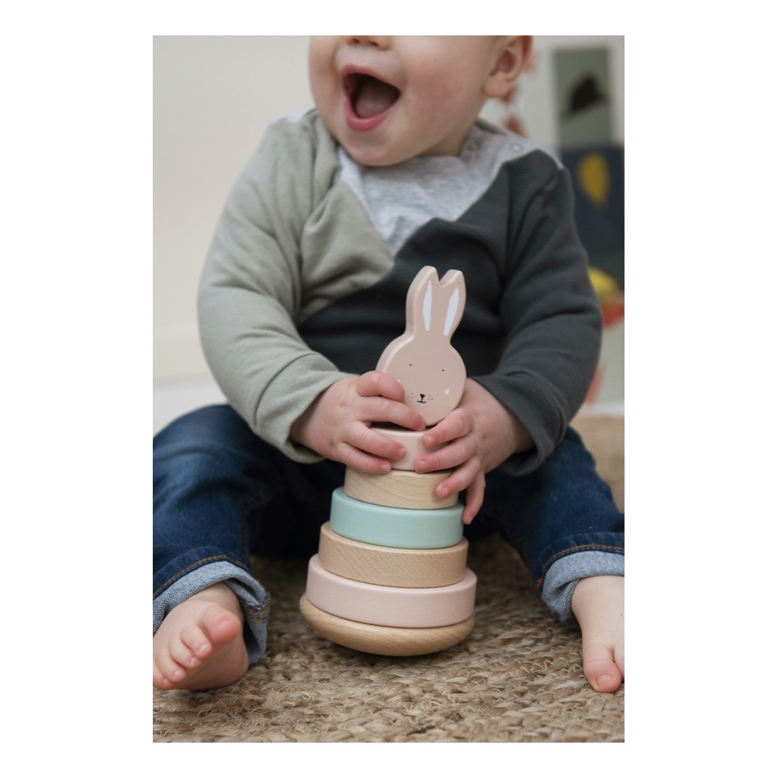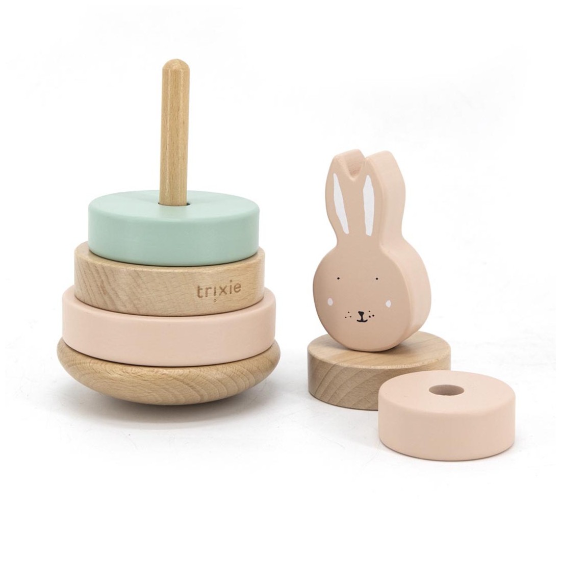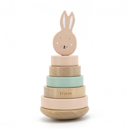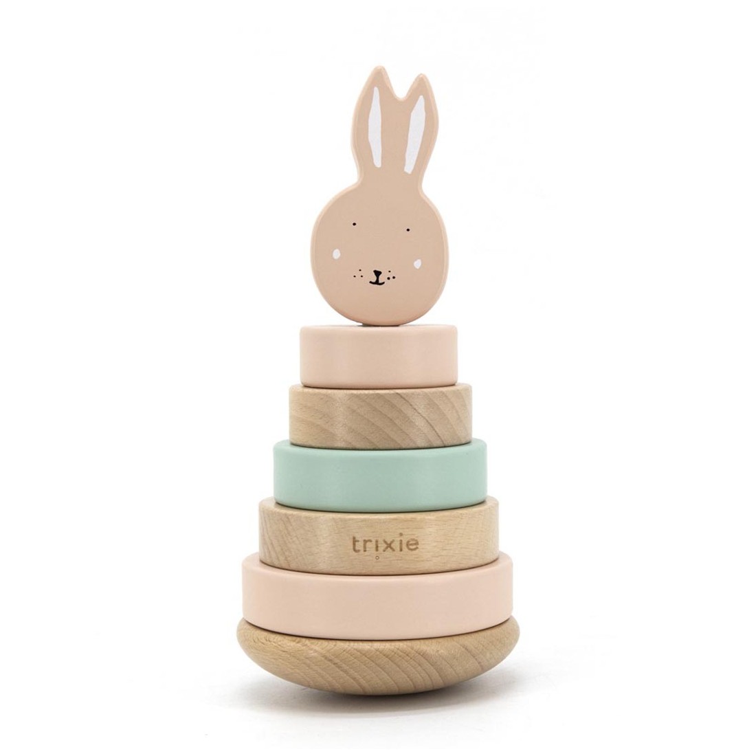 Découvrez la Tour à empiler en bois de la marque Trixie Baby, un cadeau unique et original qui surprendra les heureux parents du nouveau-né.