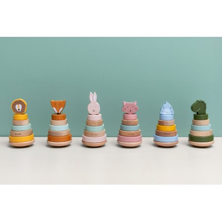 Découvrez la Tour à empiler en bois de la marque Trixie Baby, un cadeau unique et original qui surprendra les heureux parents du nouveau-né.