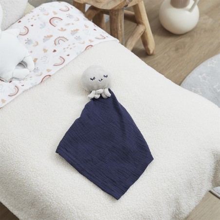 Avec sa tête en peluche (au choix : ourson, poulpe, girafe ou biche) et son tissu doux en gaze de coton, ce doudou devient vite l’allié des câlins et des siestes. Idéal pour apaiser, réconforter et stimuler les sens de bébé, il l’accompagnera partout, à la maison comme en balade.