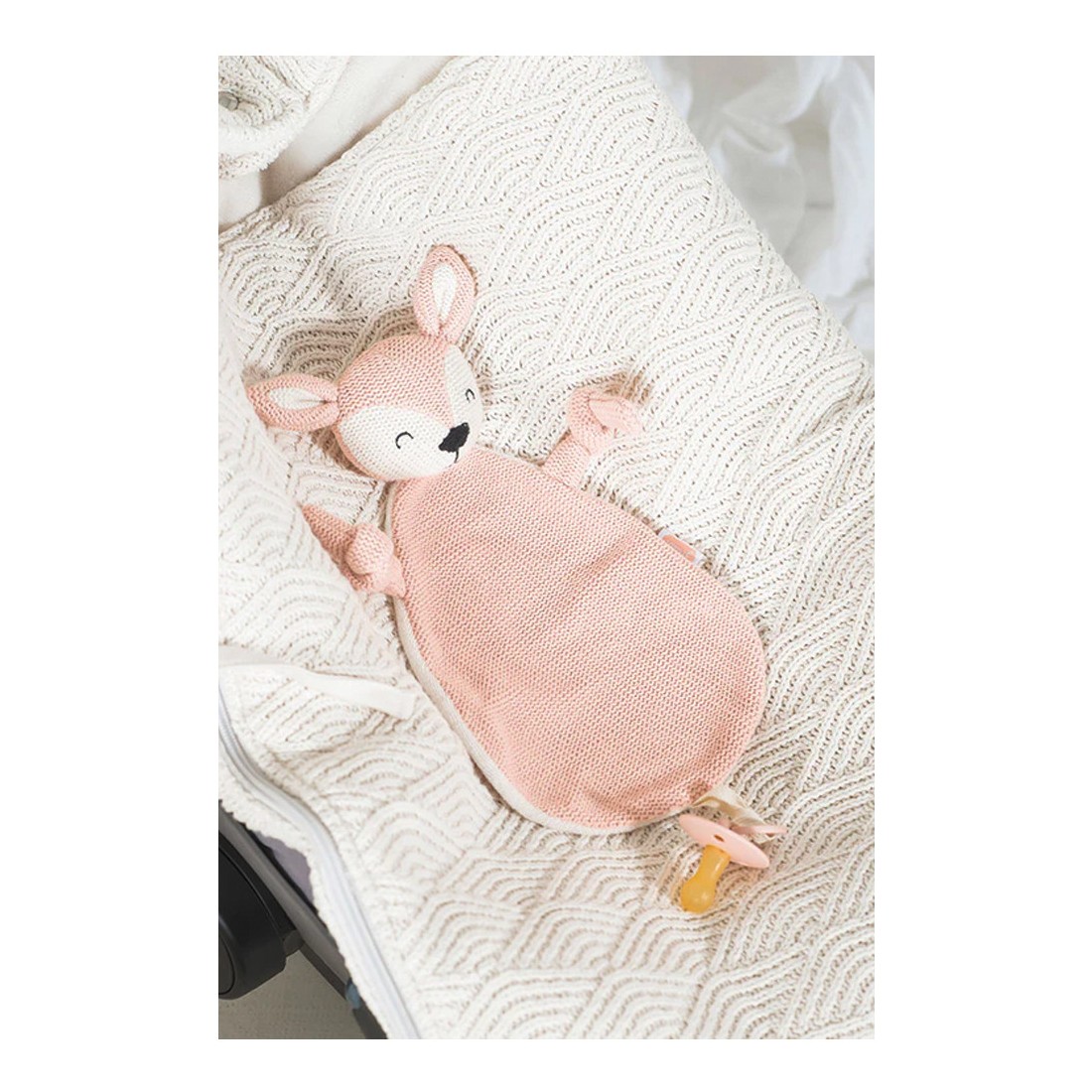 Doudou attache sucette biche en tricot rose pâle - Jollein