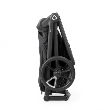 Son pliage facile et compact peut être réalisé même avec le siège installé, dans les deux sens de déplacement. Une fois pliée, la poussette tient debout seule, ce qui facilite le rangement à la maison ou dans le coffre de la voiture.