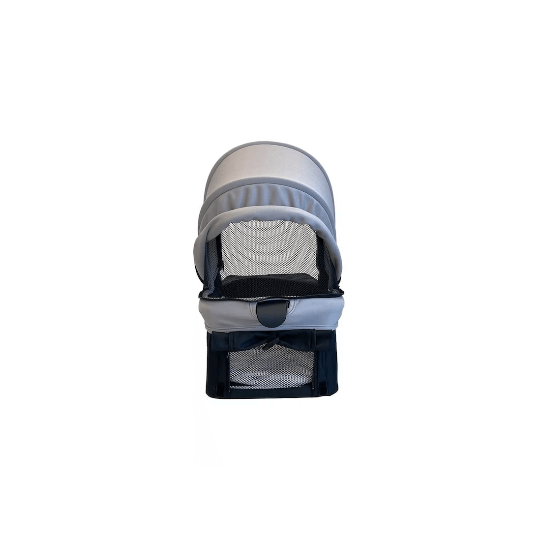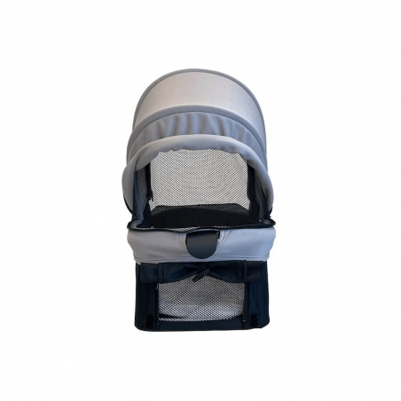 Le canopy et le dossier de cette nacelle disposent d'un zip d'ouverture avec des aérations par lesquelles vous pourrez voir vos enfants. Un habillage pluie individuel et une moustiquaire sont fournis avec la nacelle rigide.