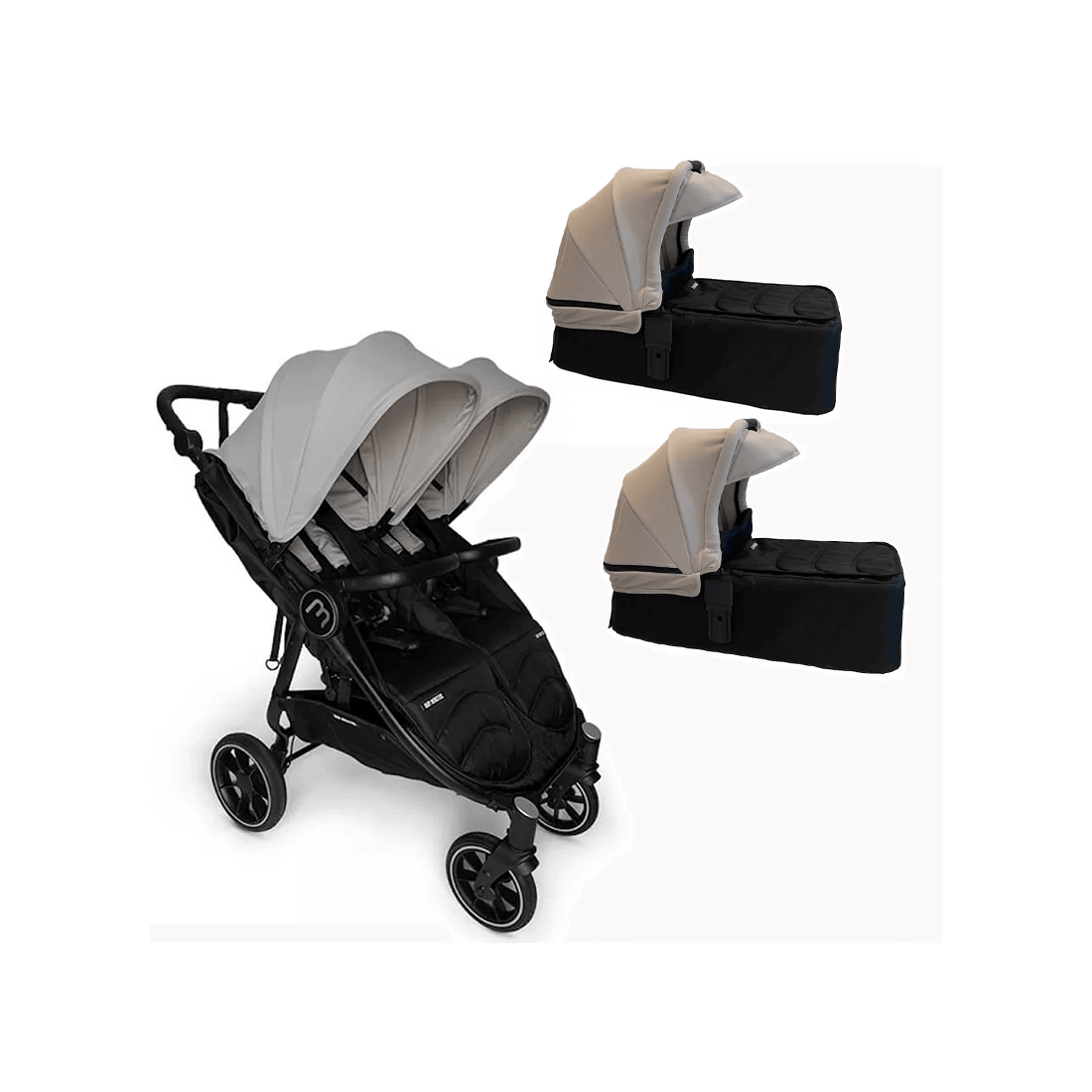 Découvrez ce pack duo pratique pour le quotidien avec vos nouveau-nés, contenant une poussette ET4 et deux nacelles rigides ET4 de la marque Baby Monsters.
