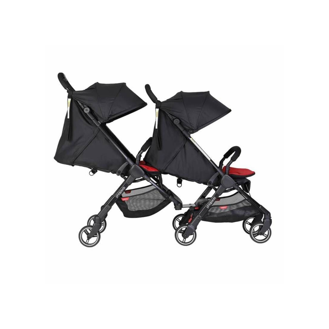 - soit une double poussette en ligne parfaitement assortie, simple à fixer, très confortable et peu encombrante