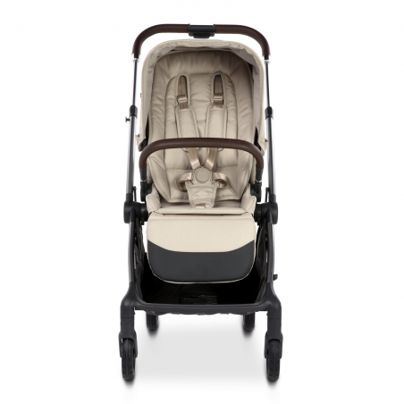Le châssis léger (9,2 kg) et compact se plie facilement, idéal pour les espaces urbains. Le panier spacieux avec Smart Pocket vous permet de transporter tous vos essentiels, tandis que les textiles haut de gamme offrent confort et durabilité. La poussette est livrée avec le châssis, les roues, le siège et l’habillage pluie.