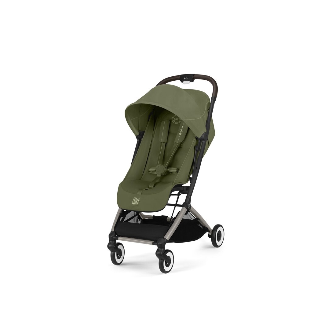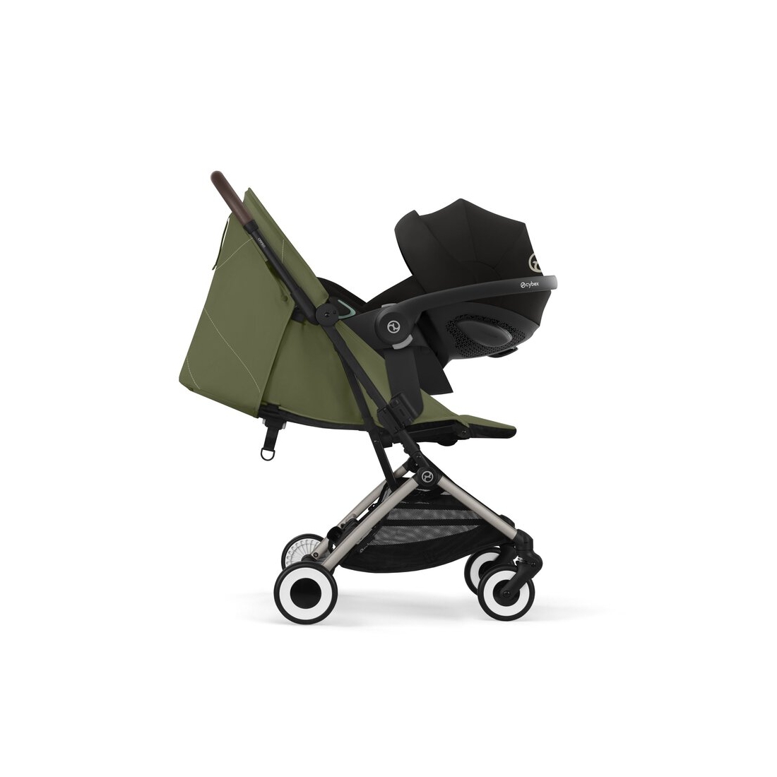 Compatible avec les sièges auto bébé Cybex (adaptateurs requis), l’Orfeo se transforme facilement en travel system, assurant une transition fluide entre la voiture et la poussette.