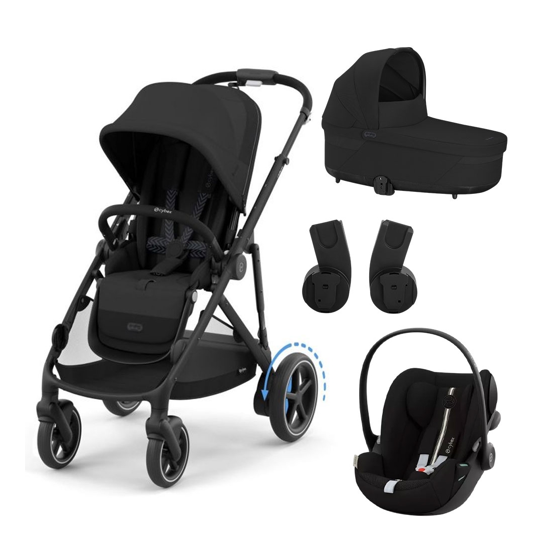 Le Pack ESSENTIAL S Cybex e-Gazelle S est la solution idéale pour accompagner les parents dès la naissance de bébé. Complet, pratique et évolutif, ce pack combine la poussette e-Gazelle S, la nacelle Gazelle S, le siège-auto Cloud T i-Size et les adaptateurs Gazelle S, afin de créer un véritable travel system Cybex simple à utiliser au quotidien.