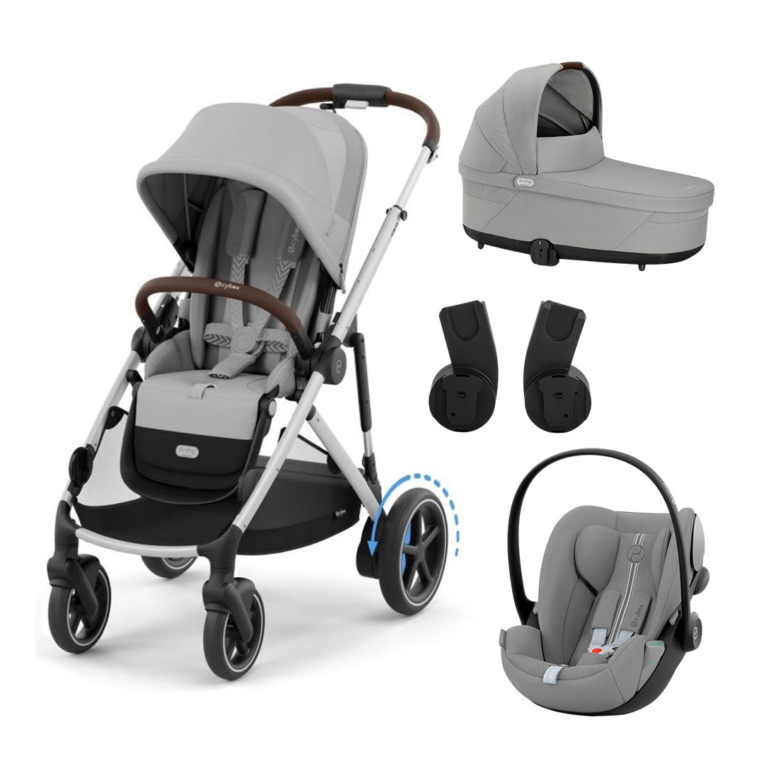 Le Pack ESSENTIAL S Cybex e-Gazelle S est la solution idéale pour accompagner les parents dès la naissance de bébé. Complet, pratique et évolutif, ce pack combine la poussette e-Gazelle S, la nacelle Gazelle S, le siège-auto Cloud T i-Size et les adaptateurs Gazelle S, afin de créer un véritable travel system Cybex simple à utiliser au quotidien.