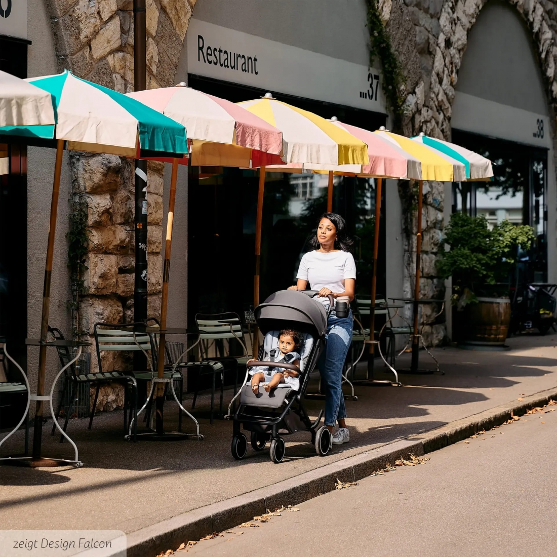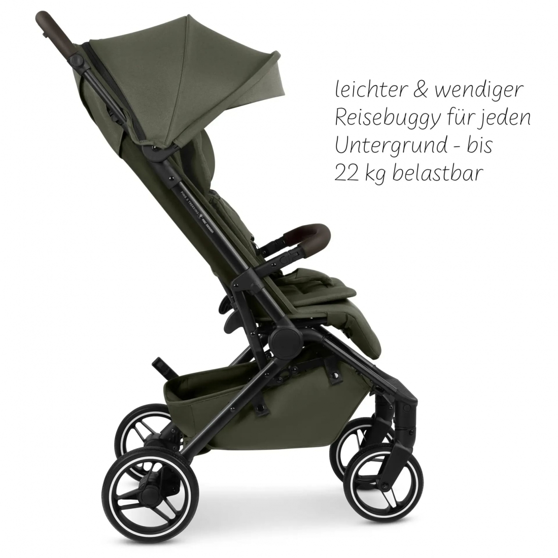 Un panier de rangement spacieux pouvant supporter jusqu’à 5 kg permet de transporter les essentiels de bébé. Le frein de stationnement situé sur la roue arrière garantit une utilisation simple et sûre.