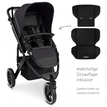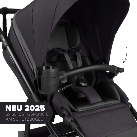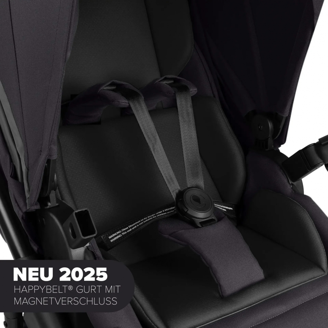 Un insert de siège ergonomique apporte un soutien supplémentaire, tandis que le harnais de sécurité 5 points HappyBelt® avec fermeture magnétique garantit un maintien sûr et facile à ajuster.