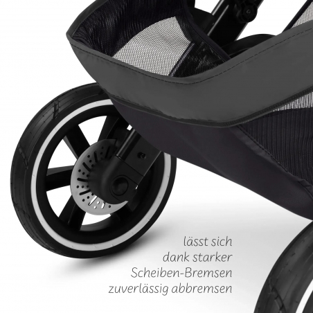 Grâce à ses trois grandes roues gonflables, sa suspension haute performance et ses roulements de roue de qualité, cette poussette jogging offre une conduite stable, fluide et silencieuse sur tous les types de terrains : routes, chemins de parc, sentiers ou surfaces irrégulières.