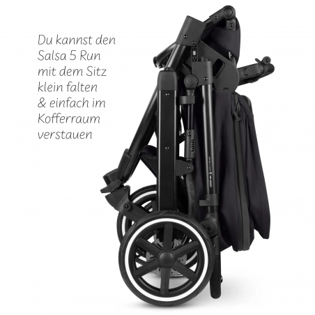 Malgré ses performances sportives, la Salsa 5 Run reste pratique au quotidien. Elle peut être pliée de manière compacte, même avec l’unité de siège installée, qu’elle soit orientée face aux parents ou face à la route.