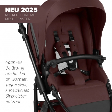 Pour assurer une bonne circulation de l’air, la poussette intègre deux fenêtres d’aération en tissu mesh situées dans la canopy et dans le dossier.