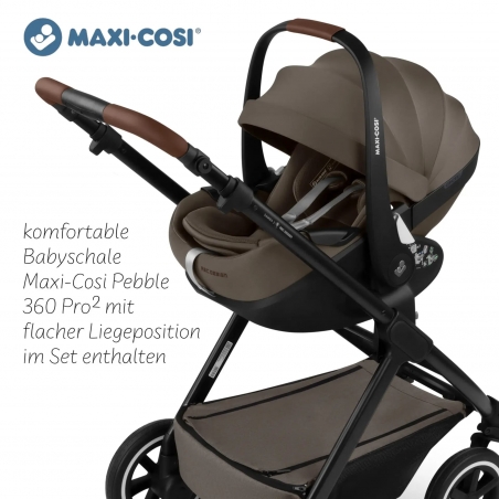 Ensemble poussette 3en1 Samba nacelle et siège auto pour bébé Maxi Cosi Pebble 360 Pro 2 - Nature