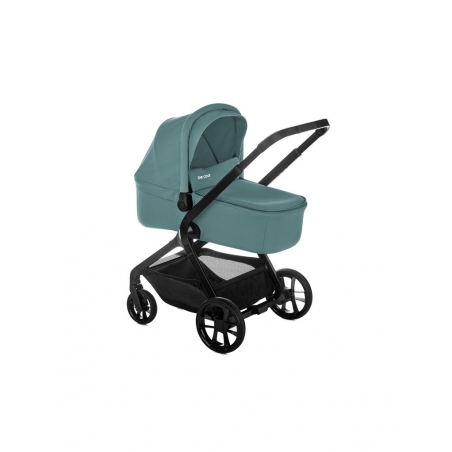 Le duo comprend également la nacelle Kombo, conçue pour offrir un espace de repos sûr et confortable lors des premières promenades. Dotée d’un matelas doux, d’une base rigide et stable et d’une capote pliable, elle protège efficacement bébé tout en garantissant un excellent maintien.