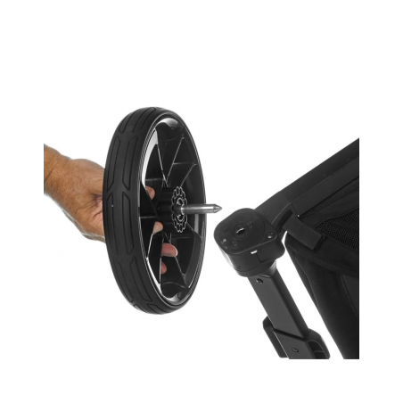 Grâce à son châssis en aluminium léger, la poussette Kombo offre une excellente maniabilité tout en restant robuste. Son pliage automatique d’une seule main, réalisable directement depuis le dossier du siège, permet de plier facilement la poussette même lorsque le hamac est installé, que ce soit face parents ou face route.