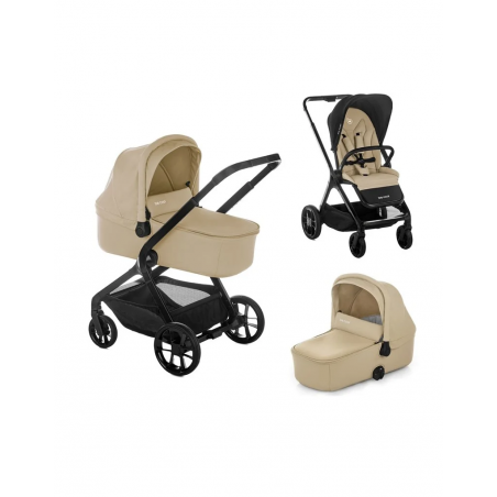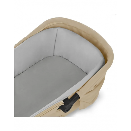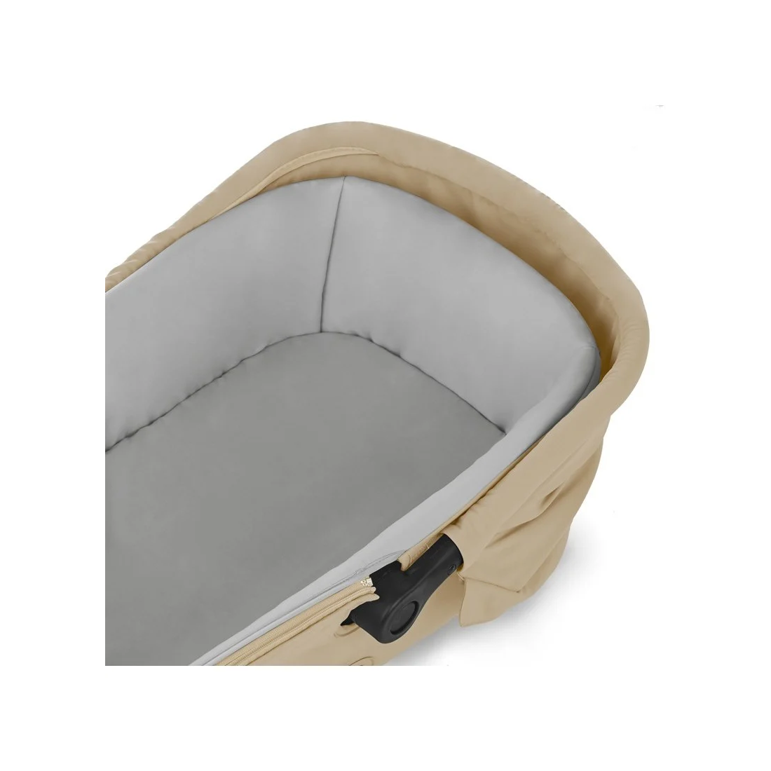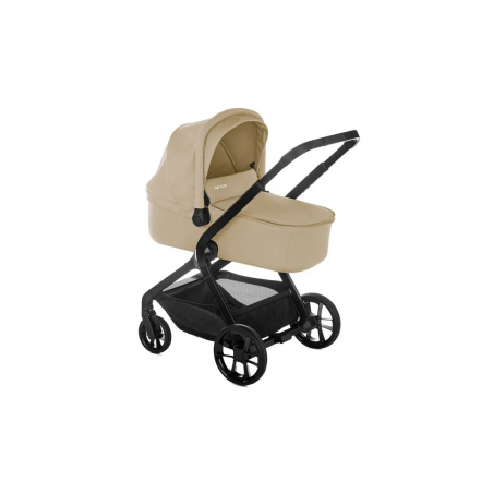 Le duo comprend également la nacelle Kombo, conçue pour offrir un espace de repos sûr et confortable lors des premières promenades. Dotée d’un matelas doux, d’une base rigide et stable et d’une capote pliable, elle protège efficacement bébé tout en garantissant un excellent maintien.