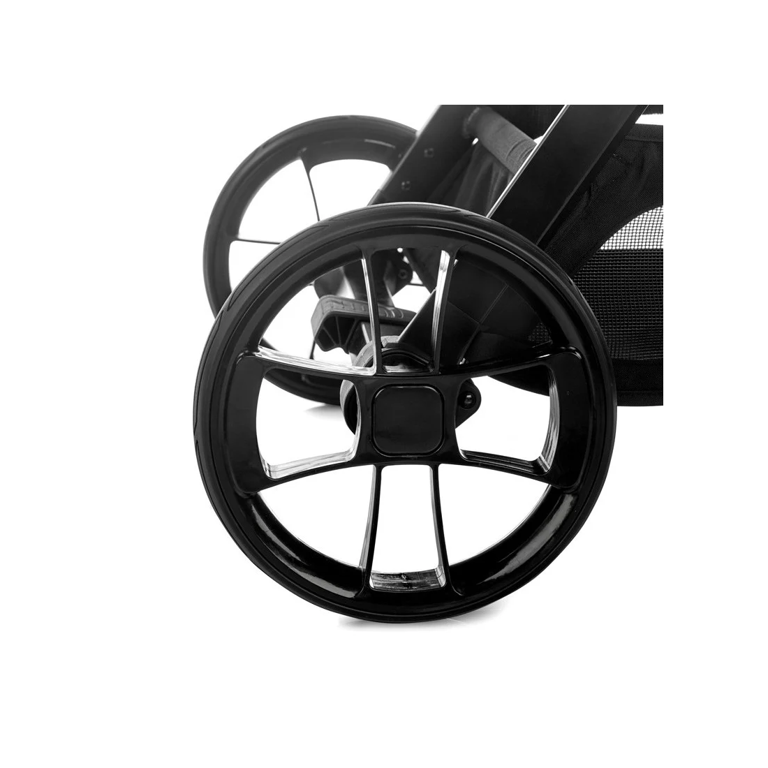 Les suspensions sur les quatre roues et les roues amovibles (24 cm à l’arrière et 16,5 cm à l’avant) assurent une conduite souple et stable sur différents types de terrains. Pour plus de praticité, la poussette est équipée d’un grand panier de rangement de 38 litres, idéal pour transporter les indispensables de bébé.