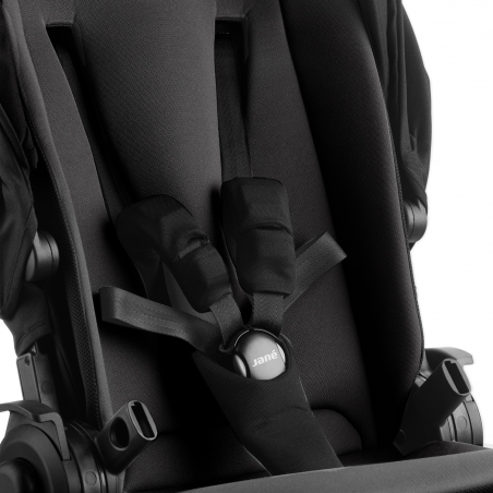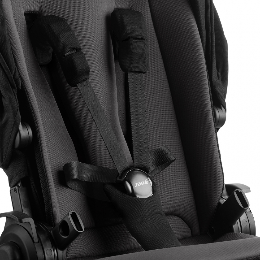 La sécurité et le confort sont au cœur de la conception de la poussette Muum. Elle est équipée d’un harnais magnétique à 5 points, facile à fermer et à ajuster d’un simple geste.