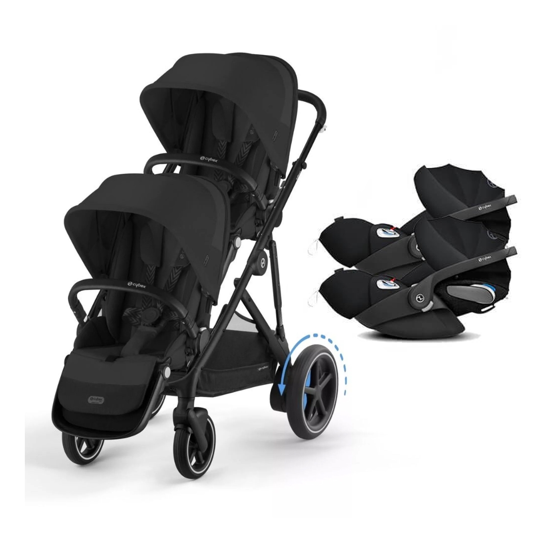 Pack Jumeaux poussette e-Gazelle S 2025 Moon Black + 2 Coques + 2 siège Cloud T i-Size Deep Black Cybex