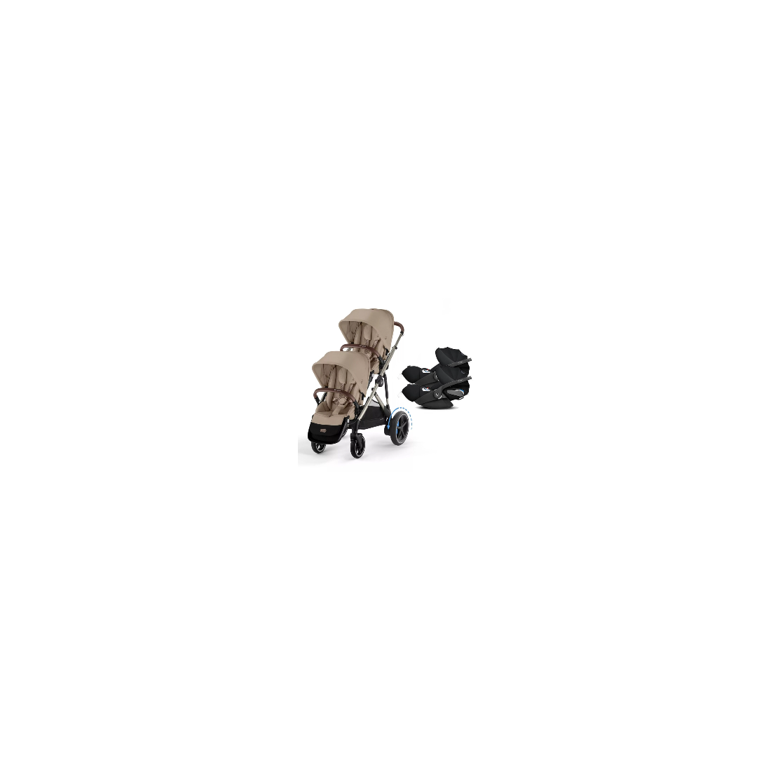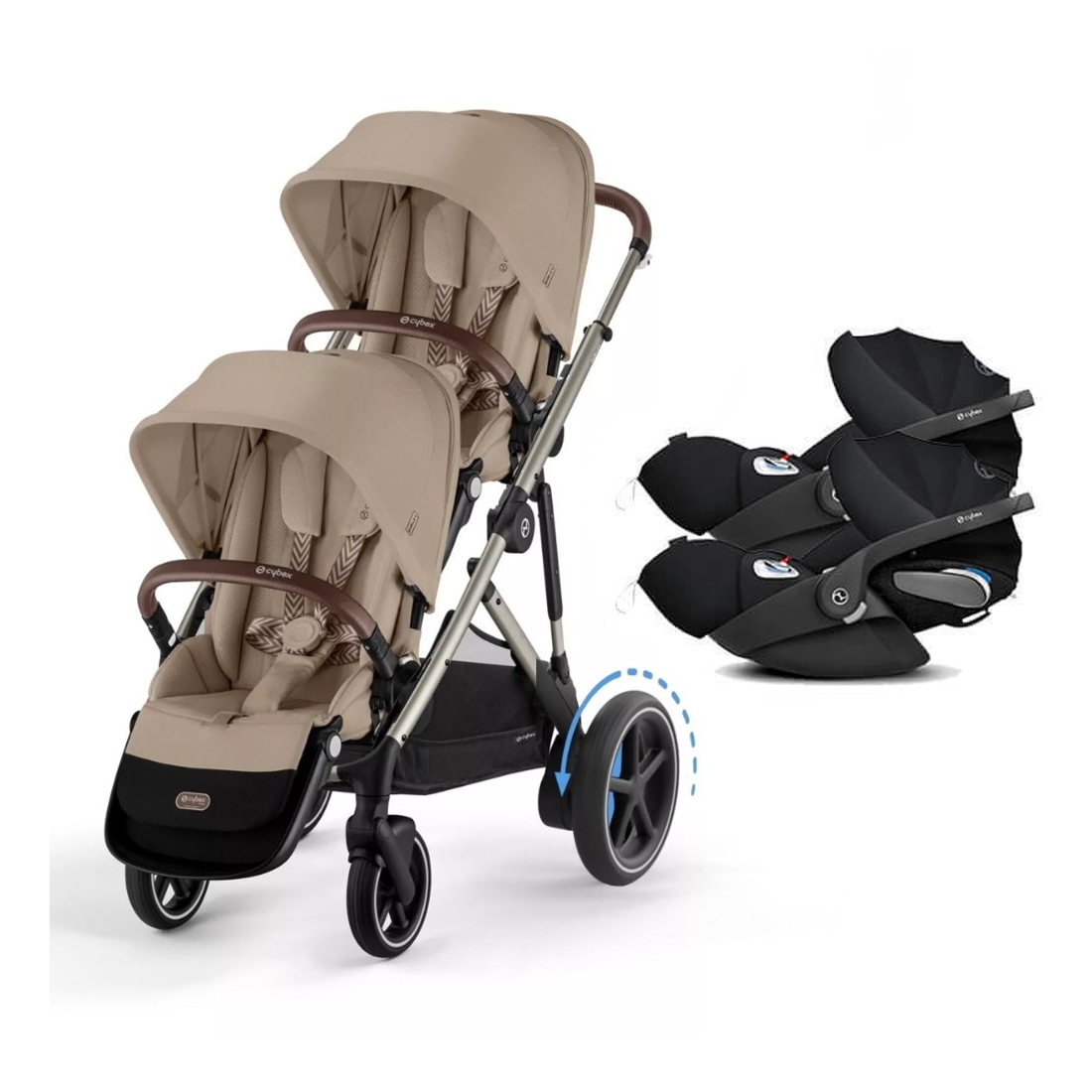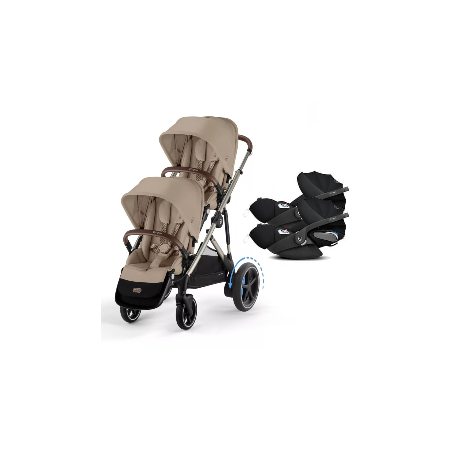 Pack Jumeaux poussette e-Gazelle S 2025 Almond Beige + 2 Coques + 2 siège Cloud T i-Size Deep Black Cybex