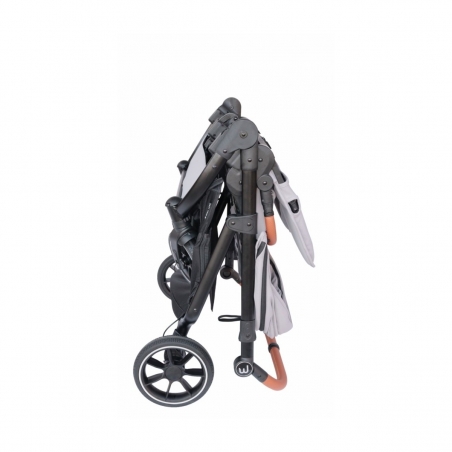 La poussette est équipée de roues en PU haute résistance adaptées à tous types de terrains. La roue avant pivotante à 360° peut être bloquée si nécessaire. Les suspensions sur les 4 roues assurent une conduite fluide et confortable.