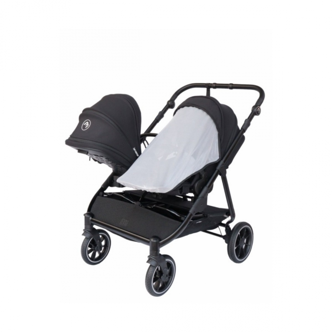 La poussette dispose d’une capote extra-large avec protection solaire UPF 50+. Elle est extensible grâce à une fermeture éclair et comprend une fenêtre arrière en maille pour la ventilation. Une moustiquaire avec protection solaire est également intégrée pour couvrir entièrement la poussette. Tous les accessoires sont intégrés afin d’éviter les pertes ou oublis.
