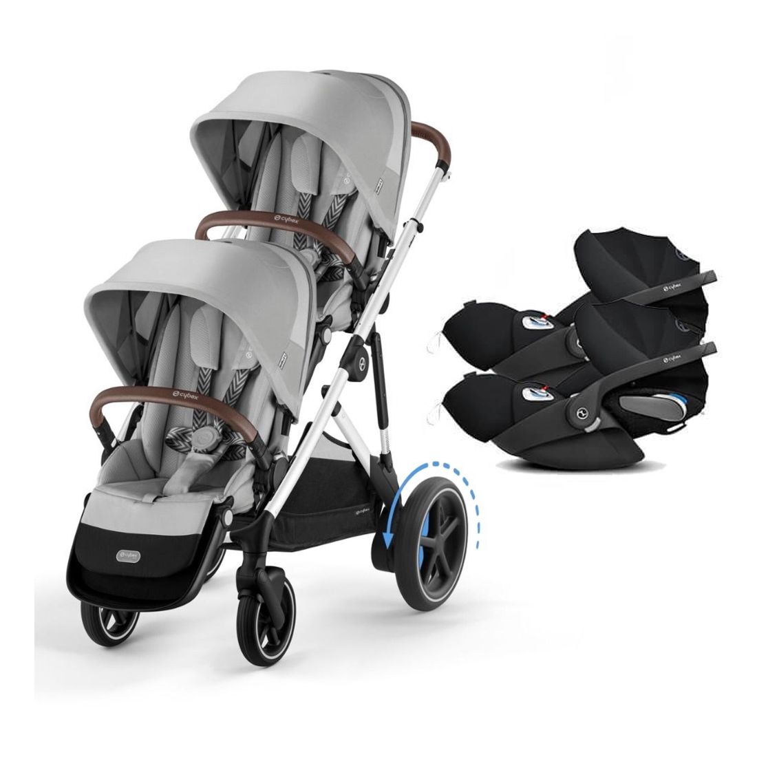 Pack Jumeaux poussette e-Gazelle S 2025 Stone Grey + 2 Coques + 2 siège Cloud T i-Size Deep Black Cybex