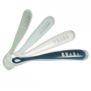 Caractéristiques des quatre cuillères en silicone Béaba :