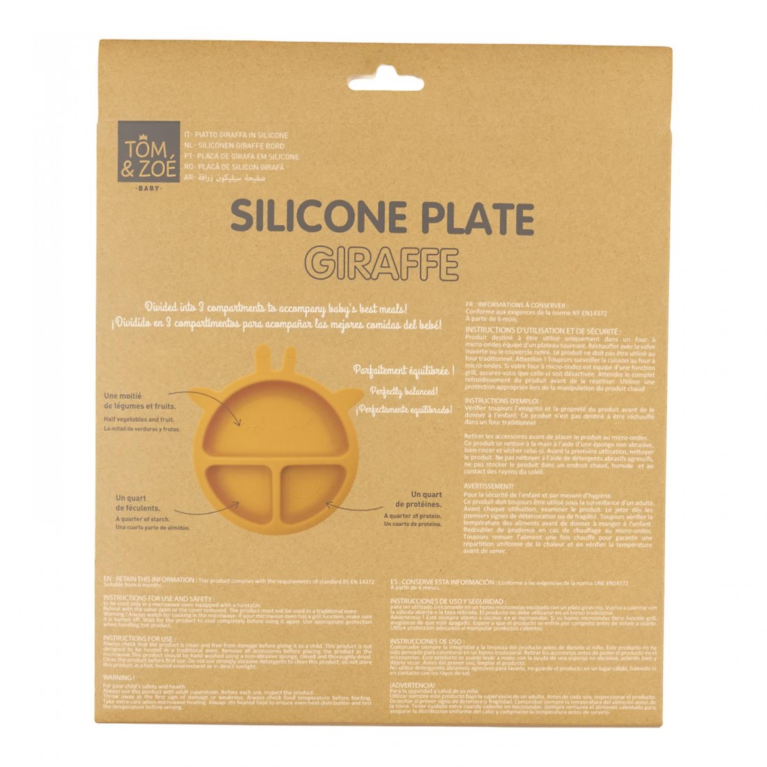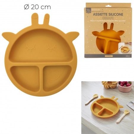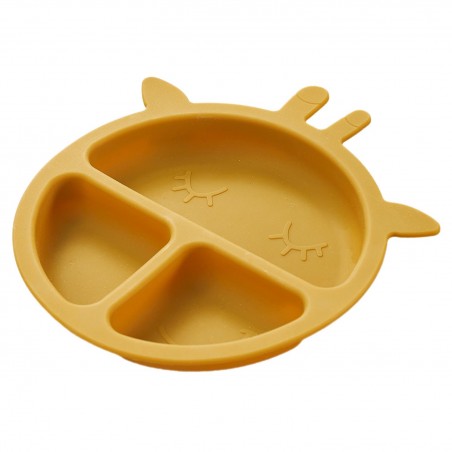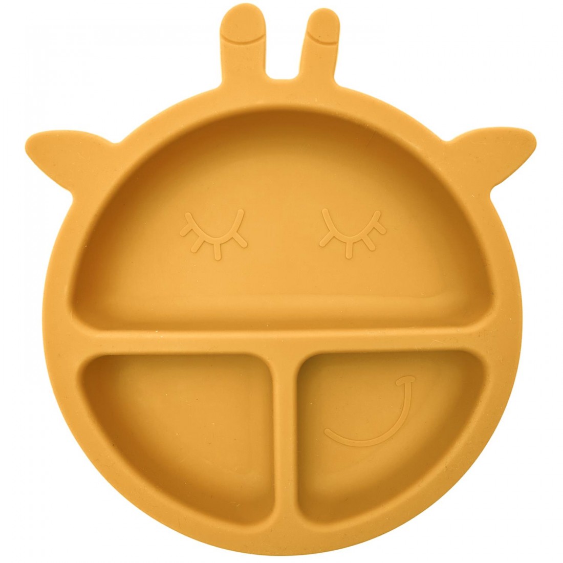 Assiette en silicone : Girafe à trois compartiments (jaune)