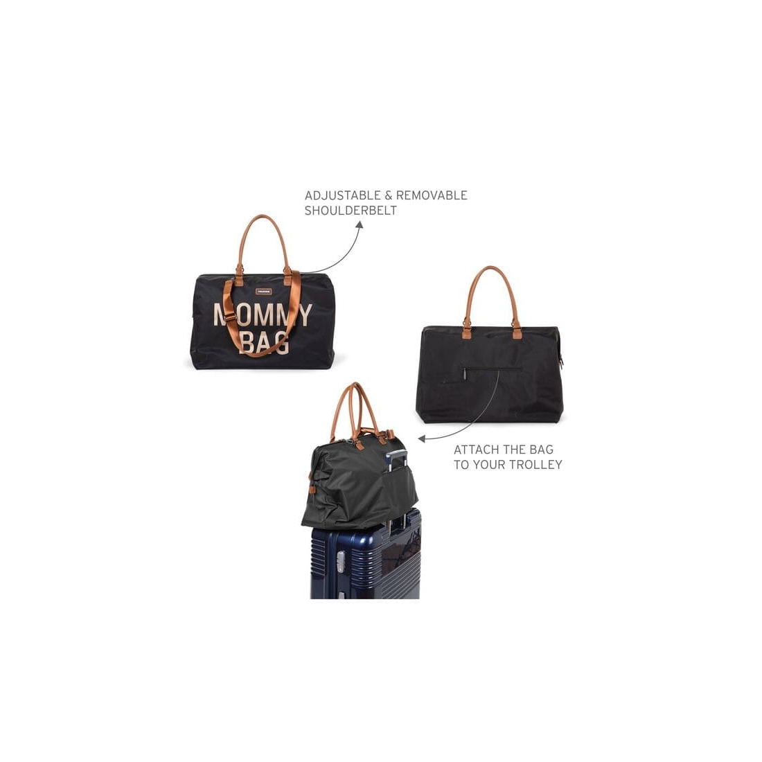 Tout le nécessaire de bébé et maman tient dans le Mommy Bag Childhome noir et or