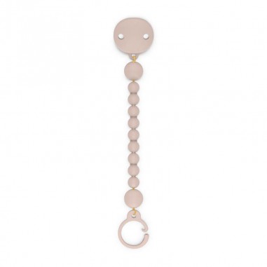 Un clip en silicone pour se fixer facilement et directement au vêtement, une boucle en silicone pour attacher la tétine et pour maintenir tout ça une chaîne de perles attachée ensemble qui est sécurisé pour l'enfant.