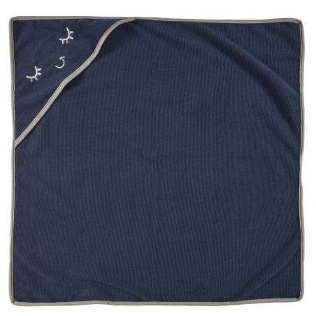 Disponible en 4 coloris : marron, moutarde, taupe et bleu nuit, cette cape de bain s’accorde facilement avec tout l’univers de bébé.