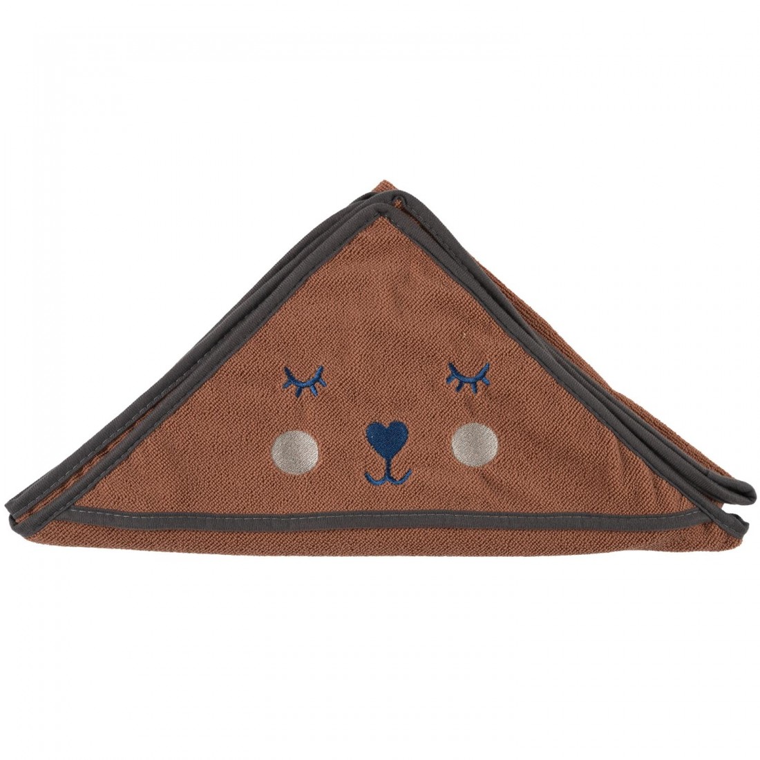 Disponible en 4 coloris : marron, moutarde, taupe et bleu nuit, cette cape de bain s’accorde facilement avec tout l’univers de bébé.
