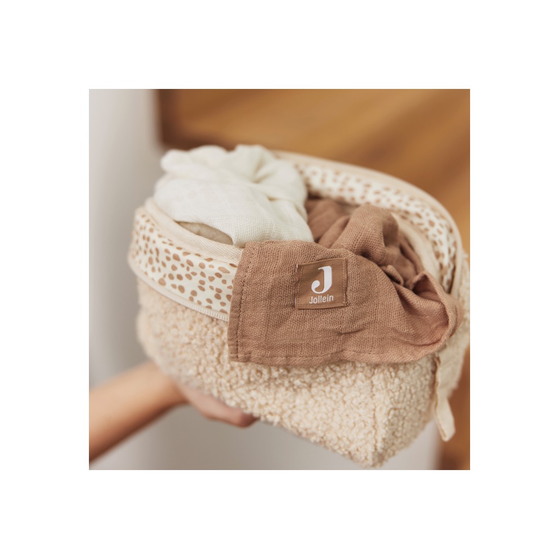 La trousse de toilette Boucle en couleur Naturel est l’accessoire indispensable pour organiser et transporter facilement les affaires de bébé. Multifonctionnelle, elle peut accueillir aussi bien les soins essentiels (lingettes, crèmes, produits d’hygiène) que les petits accessoires du quotidien comme la tétine ou le doudou.