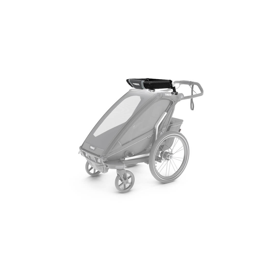 Le porte-bagages Cargo Rack 1 de Thule s'installe sur le haut de votre chariot. Il permet d'ajouter un espace de rangement pour que vous puissiez y déposer vos affaires (clés, portefeuilles, papiers d'identité, etc). De plus, il est doté d'une poche avec glissière sur toute la longueur.