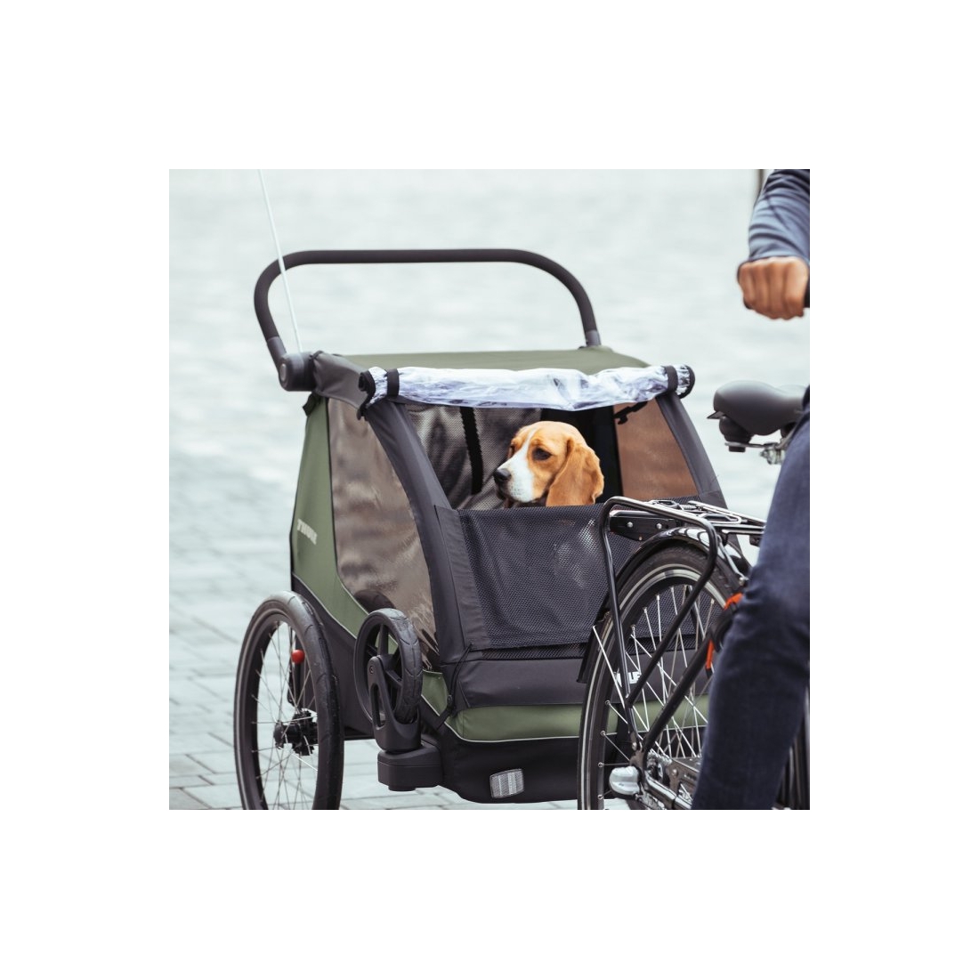 Envie d’emmener votre compagnon à quatre pattes ? Avec le Dog Trailer Kit (vendu séparément), la Thule Courier se transforme en remorque pour chien confortable, avec lit doux et housse imperméable. Parfaite pour les aventures en plein air.