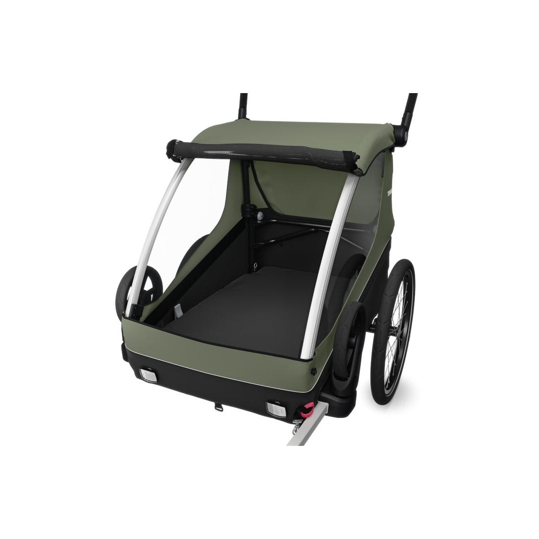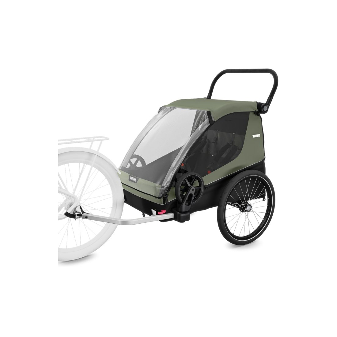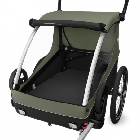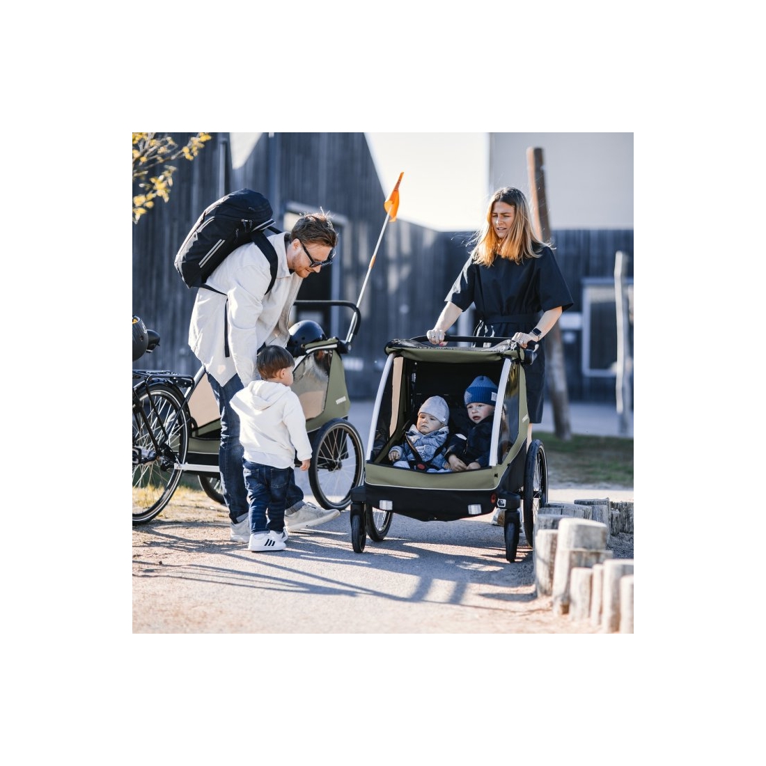 La Thule Courier est la remorque vélo idéale pour les parents dynamiques à la recherche de flexibilité, sécurité et confort. Conçue pour transporter 1 ou 2 enfants (jusqu’à 2 x 22 kg), elle se transforme facilement en poussette compacte ou en remorque cargo, vous accompagnant aussi bien pour les trajets quotidiens que pour les escapades du week-end.